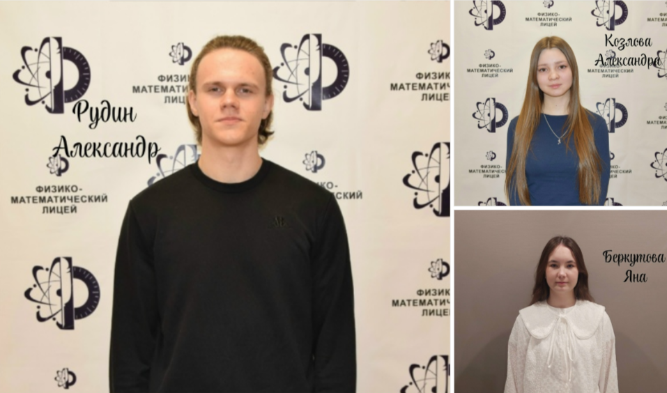 Призерами олимпиады стали 11-классник Физико-математического лицея Александр Рудин и ученицы 9 класса ФМЛ Александра Козлова и Яна Беркутова. Ребят к испытаниям подготовили наставники Константин Дерендяев и Оксана Кропотина.