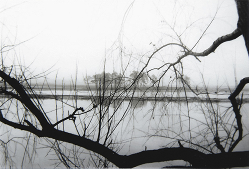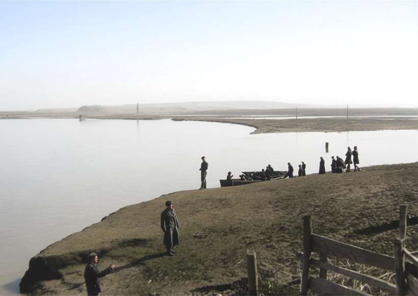 На берегу Чепцы в половодье в окрестностях Глазова, 1949-1951 годы, фото С. Лыскова, раскрашено ИИ